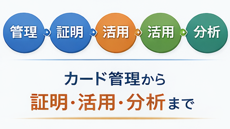 「証明」「出席・利用管理」「特典配信」「データ活用」までをワンストップで提供します。