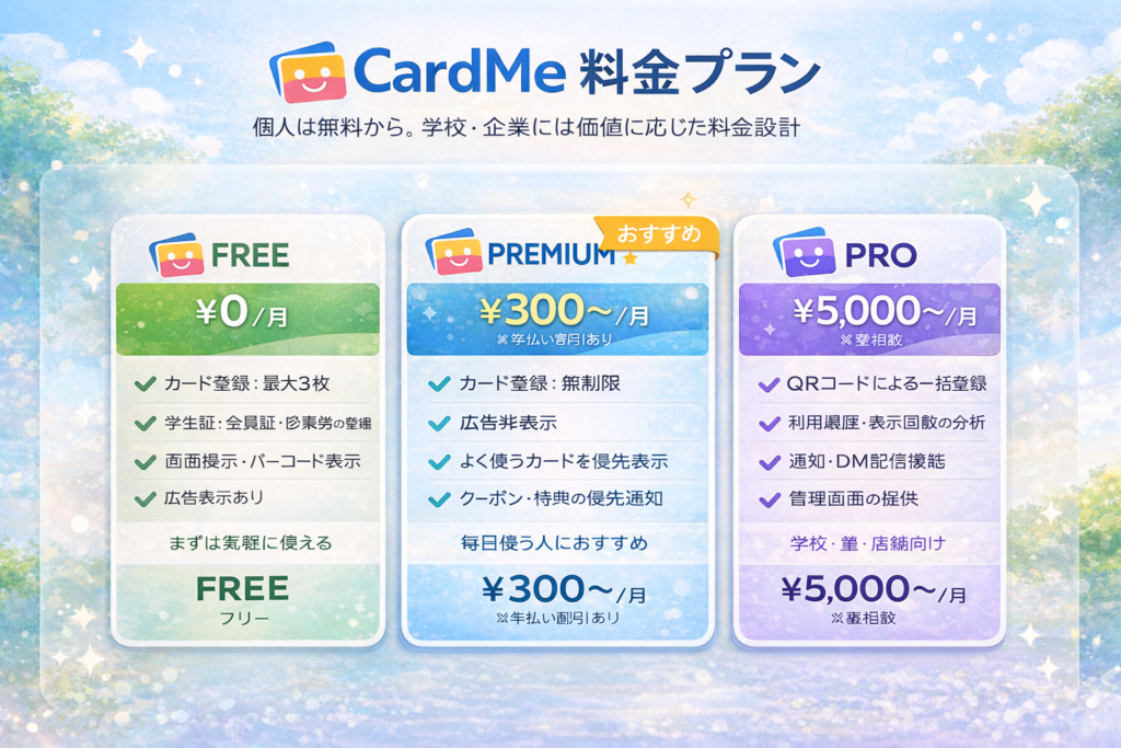 ¥300 / 月 ※年払い割引あり(例:Proプラン 年額3,600円→10%OFF)