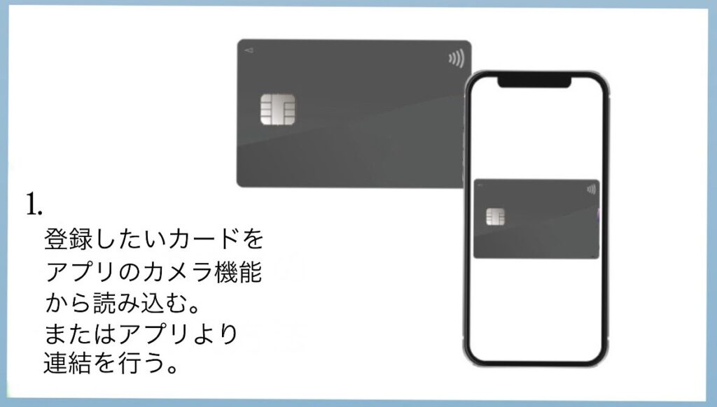 1,カードの写真をスマホにかざして読み取る。またはアプリより連結を行う