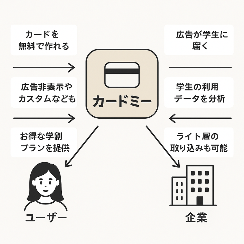 🔁 (矢印)カードミーを通じて企業へとつながる