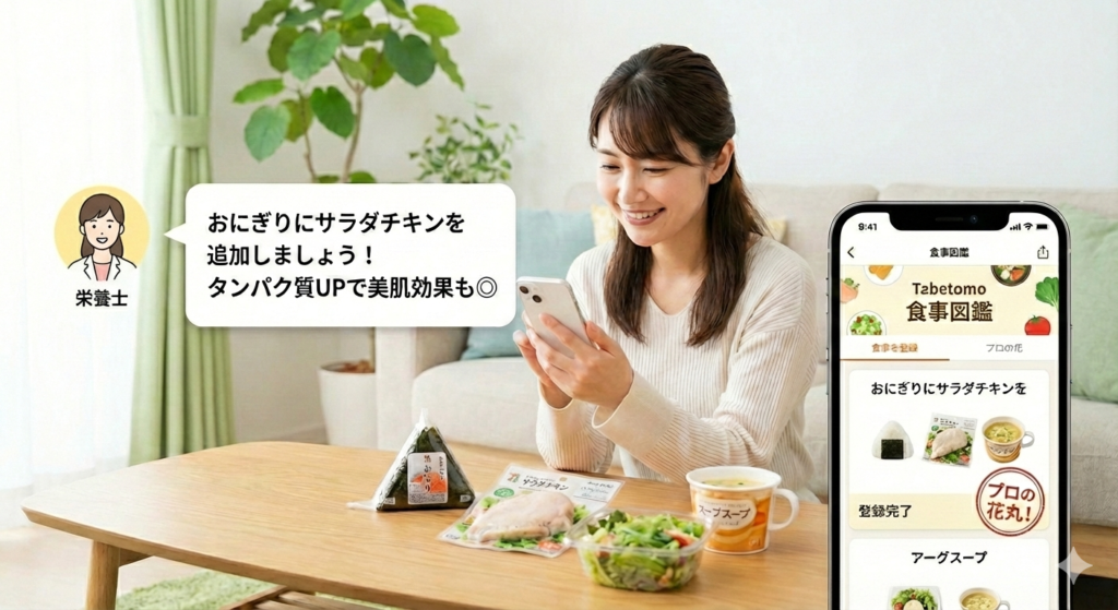 「コンビニ飯」や「外食」で、プラスαで足すべき食材を具体的に提案し、栄養バランスを整えます。