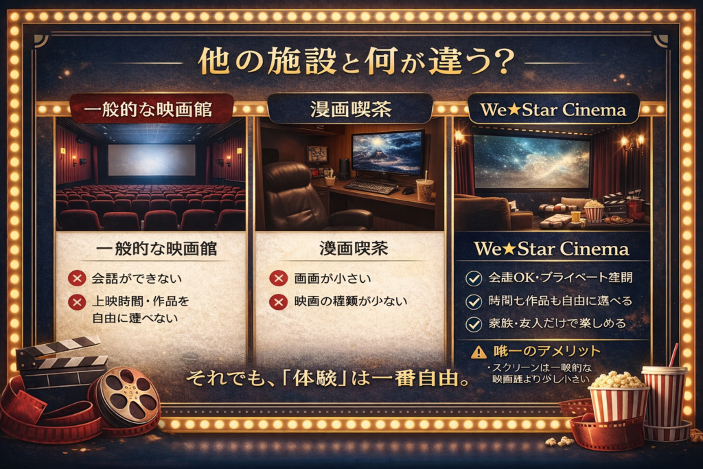 他者との比較として映画館と漫画喫茶をあげます