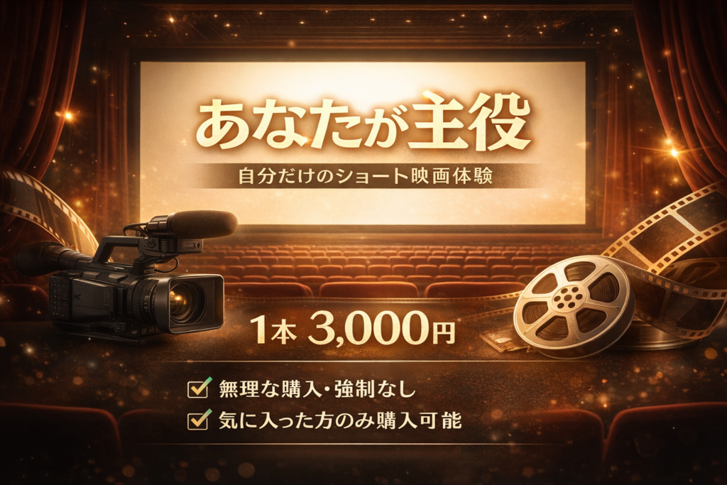 「記念日に残したい」」「自分が主役の映画を体験してみたい」 そんな方々が、 安心して選べるサービスです