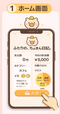 画面上には「支出額」「今日の貯金額」が表示されているため、