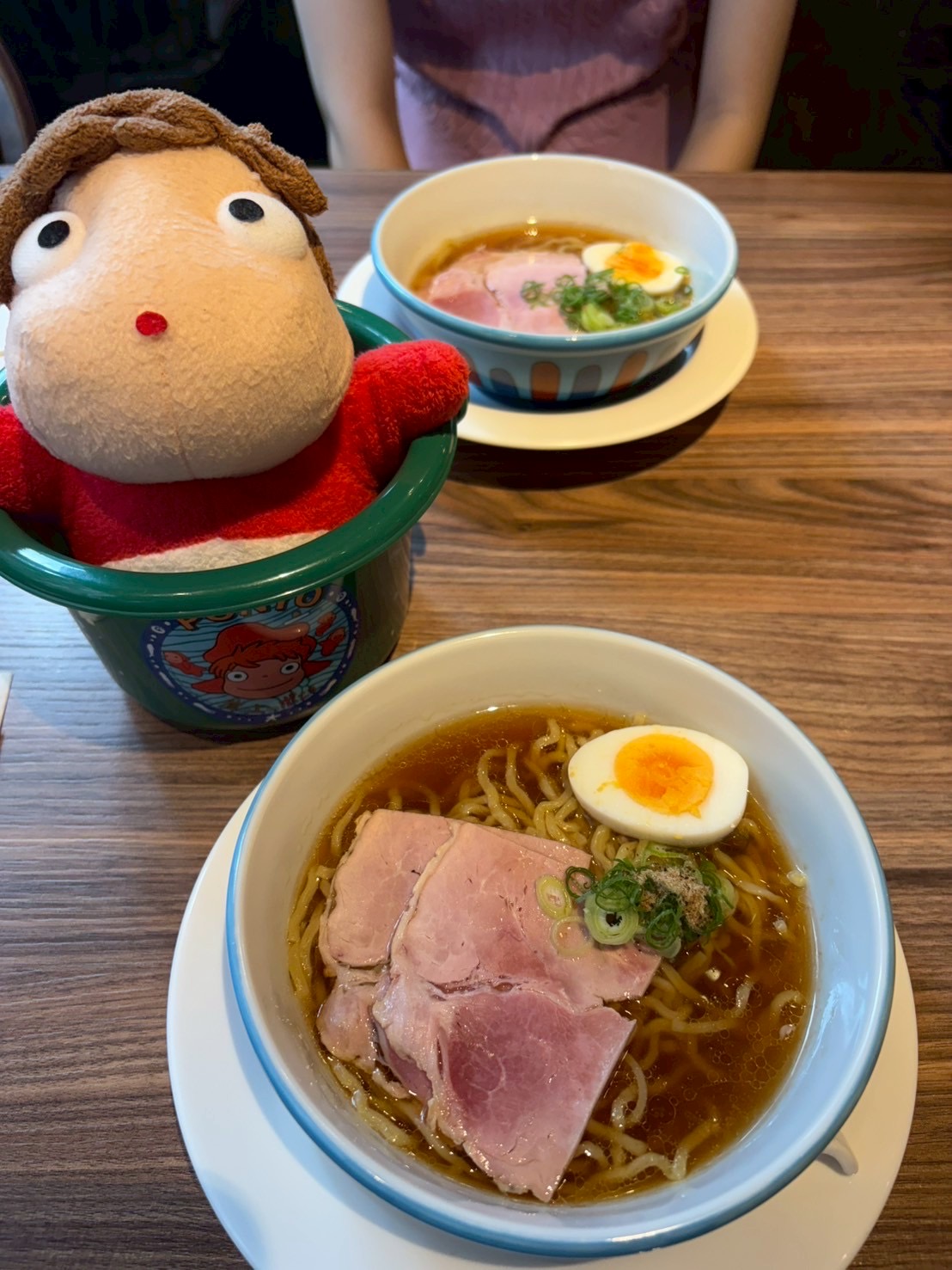 上の写真はポニョにでてくるラーメンです。食べ物と一緒にポニョのぬいぐるみも置いてくれて